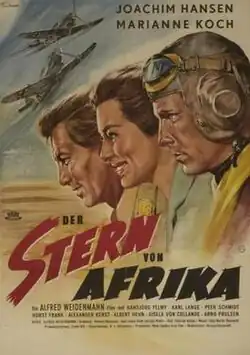 Der Stern von Afrika (English: The Star of Africa) is a 1957 black-and-white German war film portraying the combat career of a World War II Luftwaffe fighter pilot Hans-Joachim Marseille. The film stars Joachim Hansen and Marianne Koch and was directed by Alfred Weidenmann, whose film career began in the Nazi era.