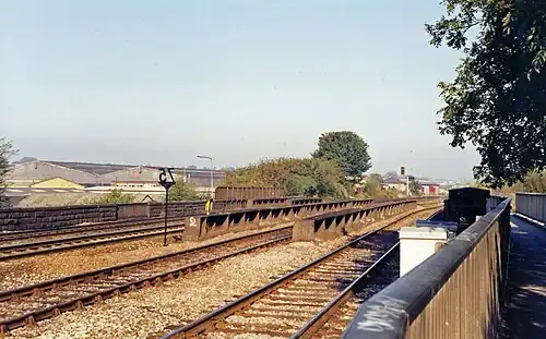 ![]() View northwards in 1991. The two nearest lines are the goods lines. The platforms were once next to the two furthest ones. | |||||