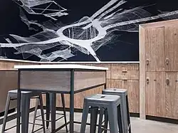 - 2018 "Infrastructure 2p1", site-specific commission for Lululemon Athletica, Time Warner Center, Columbus Circle, New York City, 79" x 324" printed vinyl wall art instillation.