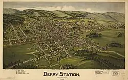 Derry was ideally suited for major railroad facilities because of its ready access to water from McGee Run (essential in the era of steam locomotives) and because it sits atop a slight summit along the railroad right-of-way. In Derry's heyday in the late 1800s, it had four hotels, mainly to serve railroad workers, as well as a roundhouse for locomotive maintenance and a massive railroad yard.[5] Derry was incorporated as a borough on October 22, 1881.[6]