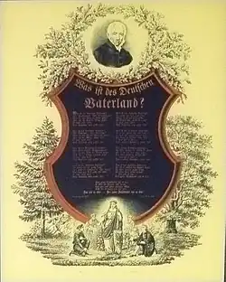 Was ist des Deutschen Vaterland is a German nationalist song by Ernst Moritz Arndt (1813) which was popular in the 19th century.