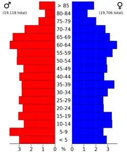 The 2020 census recorded a population of 38,910 in the county, with a population density of 91.615/sq mi (35.373/km2). 94.26% of the population reported being of one race. 82.03% were non-Hispanic White, 6.51% were Black, 3.20% were Hispanic, 0.20% were Native American, 1.04% were Asian, 0.06% were Native Hawaiian or Pacific Islander and 6.97% were some other race or more than one race. There were 18,782 housing units of which 16,751 were occupied.[1]