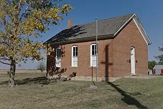 Des Moines Township No. 7, also known as Cole School, is a historic building located northeast of Boone in rural Boone County, United States. The brick one-room schoolhouse was completed in 1888. The use of brick suggests the people in this area were either people of some wealth or there was a larger population who could draw on a broader base of financial resources.[2] Student records were not kept until the year after the school opened. At that time there were 19 students who were between the ages of 5 and 16. Nellie Harvey was the first teacher, and she and those who came after her worked with the students from first grade to eighth. In addition to being a schoolhouse, the building also served as a voting place, a community center, and a storm shelter. As the number of farm families in the area diminished the enrollment in the school declined. Educational leaders began to advocate for better educational offerings and improved school buildings. In 1920 the Iowa General Assembly passed laws to improve rural schools. During the Great Depression more families left the farms and the school closed in 1933. Two of the students who attended the school when it opened had sons in the final class of eight students.[2]