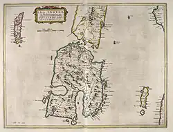 Description of the Western Isles of Scotland is the oldest known account of the Hebrides and the Islands of the Clyde, two chains of islands off the west coast of Scotland.[3] The author was Donald Monro, a clergyman who used the title of "Dean of the Isles" and who lived through the Scottish Reformation. Monro wrote the original manuscript in 1549, although it was not published in any form until 1582 and was not widely available to the public in its original form until 1774. A more complete version, based on a late 17th-century manuscript written by Sir Robert Sibbald, was first published as late as 1961.[4] Monro wrote in Scots and some of the descriptions are difficult for modern readers to render into English. Although Monro was criticised for publishing folklore and for omitting detail about the affairs of the churches in his diocese, Monro's Description is a valuable historical account and has reappeared in part or in whole in numerous publications, remaining one of the most widely quoted publications about the western islands of Scotland.[5]