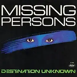 "Destination Unknown" is a song by American band Missing Persons. It was written by Dale Bozzio, Terry Bozzio, and Warren Cuccurullo with production by Ken Scott at Frank Zappa's Utility Muffin Research Kitchen studio.[2] Originally released on the band's self-titled EP (1980), the song was released as a single in September 1982 and appeared on their debut studio album Spring Session M (1982).