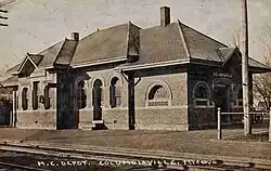 Built in 1893, the structure is a mix of Late Victorian, Queen Anne, and Richardsonian Romanesque style architecture. It is a small, one-story brick building with walls measuring 18 inches (46 cm) thick, and it maintains its original paneling, floors, ceiling, and painted brick walls since its construction. The structure was built on the site of an earlier train station that was built in 1872. The site served as a train station from 1872 to 1964 and was a prominent stopover for passenger and freight trains traveling to and from Detroit and Bay City, and the Columbiaville Depot aided in the growth of the area. The station is associated with lumber entrepreneur William Peter (1824–1899), who moved to the area in 1847 and platted the village of Columbiaville in 1871. To spur his business, Peter built the first station with an agreement with the Detroit–Bay City Railroad Company to establish a depot in Columbiaville, and the current structure was completed in 1893 to further increase transportation along the railway. The depot was decommissioned in 1964, and the railway itself ceased operation in 1977. The structure today houses the Columbiaville Rotary Club and a public library.[2]
