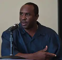 Devon Markes Whyte[1] (formerly and commonly known as Devon White; born December 29, 1962), nicknamed "Devo", is a Jamaican-born American former professional baseball center fielder, best known for his defensive ability at that position. He played in Major League Baseball (MLB) for the California Angels, Toronto Blue Jays, Florida Marlins, Arizona Diamondbacks, Los Angeles Dodgers, and Milwaukee Brewers. Follow his playing career, White served as the first base coach for the Triple-A Buffalo Bisons, and was briefly called up to the Blue Jays as first base coach in 2022.