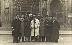 Hungarian National Boxing Team standing in front of the Cologne Cathedral, Germany, circa 1935. Frigyes is the second from right.