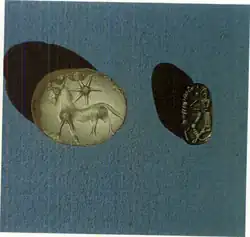 - Ten seals, including a Jemdet Nasr seal, featuring geometric and animal designs