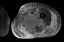 1. ^ Bhasin R, Ghobrial I (2013). "Diabetic myonecrosis: a diagnostic challenge in patients with long-standing diabetes". Journal of Community Hospital Internal Medicine Perspectives. 3 (1): 20494. doi:10.3402/jchimp.v3i1.20494. PMC 3716030. PMID 23882392.