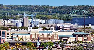 Diamond Jo Casino in the foreground; the Dubuque-Wisconsin Bridge is at the upper right.
