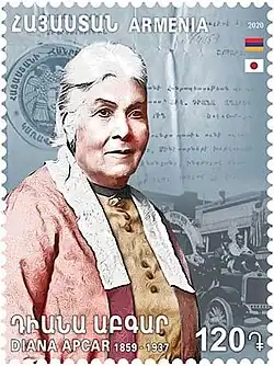 Diana Abgar (or Apcar; Armenian: Դիանա Աբգար, 17 October 1859 – 8 July 1937) was a diaspora Armenian writer and humanitarian, who was appointed Honorary Consul to Japan of the short-lived First Republic of Armenia (1918-1920).[1] She was the first female Armenian diplomat and one of the first women to have ever been appointed in any diplomatic post in the twentieth century.[2][3]
