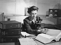 Dr. Diane May Lally Loranger, B.Sc, F.G.S., Ph.D., D.I.C., (1920–2004) was a Canadian geologist, paleontologist, and pioneer in the global petroleum industry. Her career began working with Imperial Oil in Calgary in the 1940s. She is widely regarded as the first female geologist to break through the barriers of the male-dominated field of geology in Western Canada.[1][2][3] Diane Loranger earned her Bachelors of Science in Geology at the University of Manitoba, and graduated with a doctorate in 1961 from the University of London.[3] Her work in micropaleontology was paramount to the understanding and locating of Western Canadian oil reserves at the beginning of the Western Canadian oil boom.