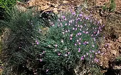Dianthus lusitanus is a species of Dianthus native to the Iberian Peninsula, and to the Atlas Mountains of Morocco and Algeria.[2] A hardy tussock-forming perennial growing on rocky slopes, in times past its numerous stems were used to make brooms.[3]