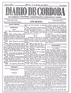 - ^ In Spanish: Diario de Córdoba de comercio, industria, administración, noticias y avisos