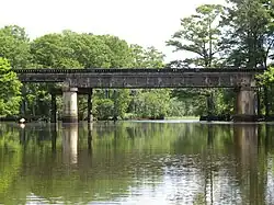In 1881, the Chesapeake and Ohio Railway bridged the creek further downstream as part of its Peninsula Extension. A bridge crossed the major channel to Hicks Island and a causeway connected the island to the eastern bank. The Diascund station was built just to the east. The Lanexa station was to the west.