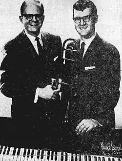 Anthony worked as a radio presenter with Jack Wyrtzen's "Word of Life" radio broadcasts and "Songtime" weekly show on the ABC television network from New York City.[4][13] Anthony did not begin singing professionally until he became the arranger for the quartet who performed on the Word of Life.[8] He joined the staff of Chicago radio station WMBI[5] in 1952, performing about 25 broadcasts each week.[14][4][9] He worked with gospel songwriter John W. Peterson on a daily radio program called "Cheer Up.[15] Anthony also appeared on "The Songsters" and "Keep Praising" at WMBI.[16] Anthony frequently performed duets with singer Bill Pearce on broadcasts, recordings and live concerts.[17][18][9][19] Anthony and Pearce met when both worked at WMBI Radio; Pearce was also a member of WMBI's "The Melody Four" quartet.[20][21] Both Anthony and Pearce also performed as members of "16 Singing Men".[22][b]