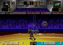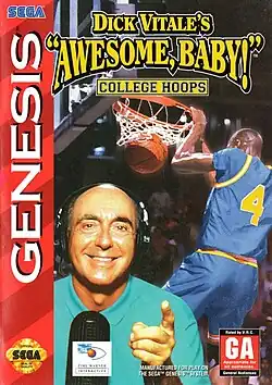 Dick Vitale's "Awesome, Baby!" College Hoops is a 1994 college basketball sports game developed and published by Time Warner Interactive. It was released for the Sega Genesis in 1994. Directed by Richard Seaborne, the game features the voice and likeness of the basketball sportscaster Dick Vitale and prominently features his quotes and catchphrases.[1] Players play as multiple college basketball teams from the United States[2] in a 3D court that automatically rotates to fit to the player's position, which was a major selling point for the game.[3]