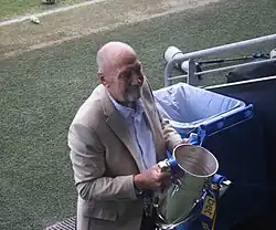 ![]() Dickie Guy lifting the EFL play-off's trophy. | |||