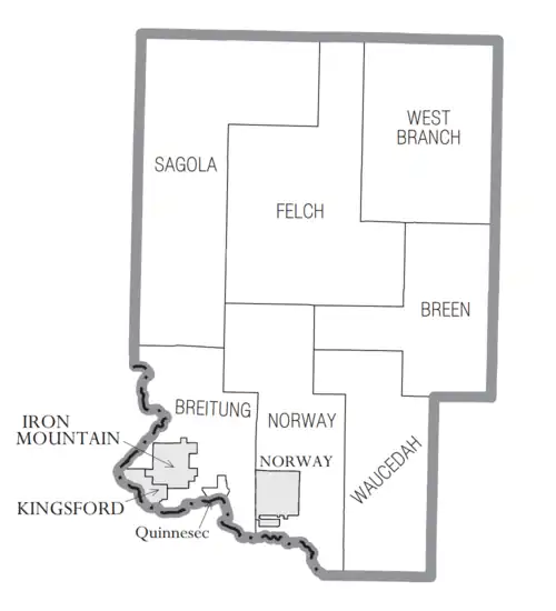 Dickinson County is part of the Iron Mountain, MI–WI micropolitan statistical area.