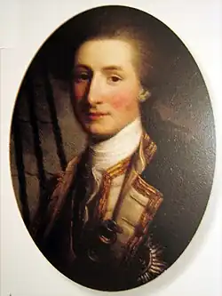 After Lord Mansfield's death in March 1793, Belle, now aged 32, married Jean Louis Charles Davinière aged 25 (anglicized to John Davinier) on 5 December 1793 at St George's, Hanover Square. Their wedding was witnessed by John Coventry and Martha Darnell (a dairy maid from Kenwood).[38][39] Belle's husband was a French servant from Ducey in Normandy. His date of birth is unknown, but he was baptised on 16 November 1768; assuming this happened shortly after birth, he was 7 years younger than his wife. He had left France for England towards the end of the 1780s and found work as valet or steward, the terminology of his occupation varies on different sources, but his employer John ('Fish') Craufurd died in 1814, and in his will, he referred John Davinière firmly as "his valet".[40] They were both then residents of the parish.[9][41][42] The Daviniers had at least three sons: twins Charles and John, both baptised at St George's on 8 May 1795; and William Thomas, baptised there on 26 January 1802.[42][43][44]