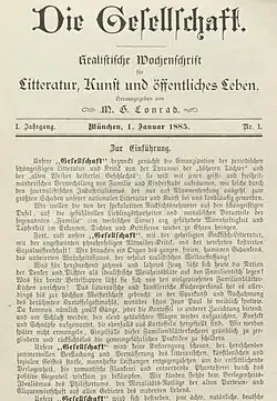 Die Gesellschaft (German: Society) was a magazine which was published in German Empire between 1885 and 1902. It billed itself as the "organ of contemporary literary youth".[1] It is known for its strong support for naturalism and its founder and editor Michael Georg Conrad.