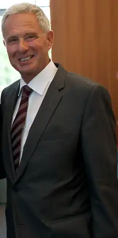 During his active political career, he engaged in discussions concerning European politics. He raised awareness in the mid 1990s by expressing serious concerns about the implementation of the Euro.[2] In his opinion, the strict fulfillment of the Maastricht Criteria had to be guaranteed by all means. Therefore, 1999 seemed to be too early for many European states. However, he urgently sought the compromise of a German-French monetary union (the only two states which would have fulfilled the criteria at that time)[3] in order not to risk German jobs. He proposed to postpone the implementation of the monetary union for five years.[4]