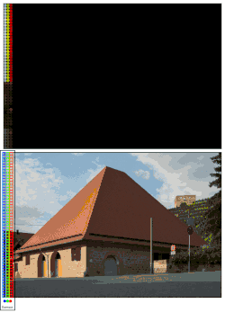Now instead of doing it with one array, we do it with three arrays at the same time (one for each component in RGB), where the first array would be making an exposure at x, the second at x − 1, and the third at x − 2. The resulting image would be 10,000 × 10,000, or 100 million pixels, with full color information for each pixel.