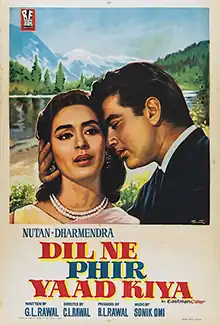 Dil Ne Phir Yaad Kiya (transl. The heart reminded once more) is a 1966 Bollywood romantic drama film directed by C. L. Rawal.[1] It stars Nutan, Dharmendra, Rehman and Jeevan.[2] The music is by Sonik Omi.[3] It has Nutan in a double role.