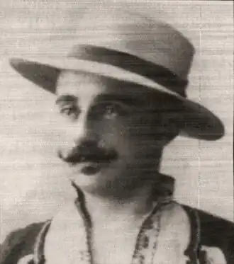 Dimitar Agura's likeness was preserved in a portrait by Dimitar Karastoyanov, where he is shown wearing a Shopluk costume.[90] General Agura was sent to Bucharest soon after his cousin's death, in November 1912, to commemorate the Siege of Plevna and Carol's role in it—his participation was a downgrade from the state visit initially planned by Prince Kiril.[91] In mid-1913, Bulgaria and Romania faced each other in the Second Balkan War. They were again on opposite sides during World War I, which also witnessed the union of Bessarabia with Romania. Dimitar's surviving brother Vasil joined in the unification process as a representative of pro-Romanian, well-off Bulgarians. Still "fluent in Romanian", he represented Kitai on a regional committee which collaborated with the Romanian troops entering southern Bessarabia.[92] His brother the scholar had fathered three children, including engineer Dimitar Agura Jr, famous for introducing reinforced concrete to Bulgaria during the interwar period.[3][4] Dimitar's other offspring were daughters Nedyalka and Elena, with the former noted as one of Bulgaria's first female pianists.[4]