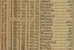The town was named for its founder, Daniel Dimmick, who emigrated here from Mansfield, Connecticut by way of Hennepin, Illinois in 1833.[2] The railroad was extended to Dimmick c. 1865 by the Illinois Central Railroad.[3] In 1873, a rail depot was constructed to replace an earlier one that had fallen into disrepair and the town was platted. By 1876, the town was home to three stores and a blacksmith.[4] A post office was established at Dimmick in 1877, and remained in operation until 1912.[5] Passenger service continued until the early 1930s before being discontinued.[6]