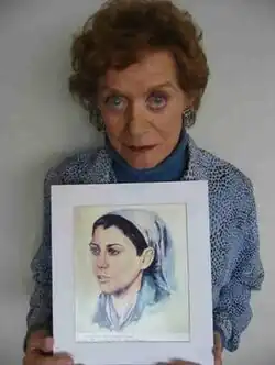 ![]() Dina Babbitt with a copy of one of the portraits she painted in Auschwitz | |