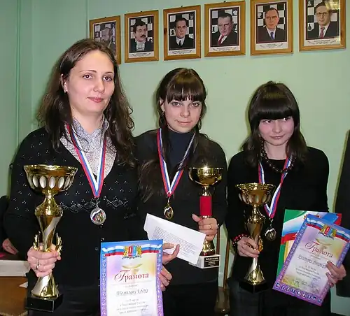 - ^ "XX чемпионат России по шахматам среди женских команд" [XX Russian Women's Chess Championship]. Chess Results (in Russian). Retrieved 7 March 2022.