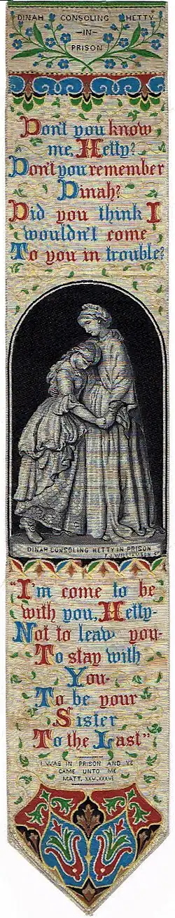 Dinah visits the fictional community of Hayslope — a rural, pastoral and close-knit community in 1799. She says to Lisbeth Bede in Chapter Ten, "I work in the cotton-mill when I am at home."[1] She lives thirty miles away in the fictional Snowfield, in the fictional Stonyshire County.