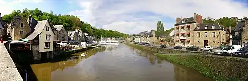 Dinan (French pronunciation: [dinɑ̃] ; Breton: [ˈdinãn]) is a walled Breton town and a commune in the Côtes-d'Armor department in northwestern France. On 1 January 2018, the former commune of Léhon was merged into Dinan.[3]