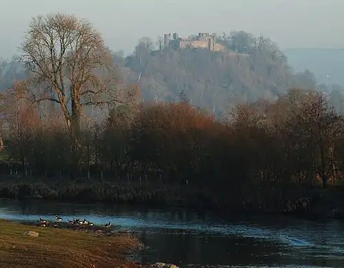 Dinefwr Castle (Welsh: Castell Dinefwr; also known as Old Dynevor Castle) is a ruined castle overlooking the River Towy near the town of Llandeilo, Carmarthenshire, Wales. It lies on a ridge on the northern bank of the Towy, with a steep drop of one hundred feet to the river. Dinefwr was the chief seat of the Dinefwr dynasty of the Kingdom of Deheubarth. The castle is a Grade I listed building.[1]