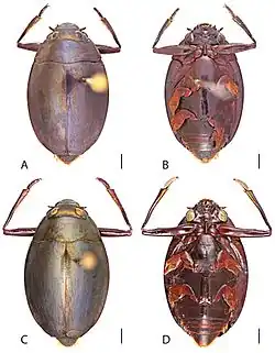 1. ^ Gustafson, Grey T.; Miller, KB (2015). "Тhe New World whirligig beetles of the genus Dineutus Macleay, 1825 (Coleoptera, Gyrinidae, Gyrininae, Dineutini)". ZooKeys (476): 1–135. doi:10.3897/zookeys.476.8630. PMC 4311692. PMID 25685002.