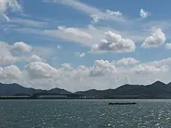 Dinghai ⓘ (simplified Chinese: 定海区; traditional Chinese: 定海區; pinyin: Dìnghǎi Qū) is a district of Zhoushan City made of 128 islands in Zhejiang province, China. The total area is 1,444 square kilometres. The land area is 568.8 square kilometres, the sea area is 875.2 square kilometres, and the coastline is more than 400 kilometres. It is based on the larger northwestern half of Zhoushan Island, where it borders Putuo in the east. The district boundary meets that of Daishan County out at sea to the north of the island. Its southwestern boundary intersects the border of Ningbo, also entirely at sea.