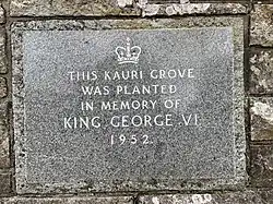 A kauri grove of 70 saplings was planted in memory of King George VI.[4]