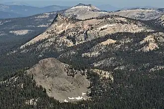 ![]() Aerial view looking south over Dinkey Lakes Wilderness showing Black Peak, Dogtooth Peak, and Eagle Peak. | |