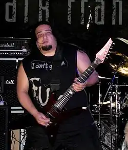 Dino Cazares (born September 2, 1966) is an American musician, best known as the guitarist and one of the co-founders of industrial metal band Fear Factory. He is also a co-founder of Divine Heresy, Asesino, and Brujeria. Cazares popularized the use of digital amp modelling processors, as well as the use of seven and eight-string guitars in metal music.