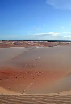 Originally, the band intended to release just a lyric video, but co-director Cléver Cardoso convinced Brasil to make a complete video since he considered the track "too good for just a lyric video".[3] The project was canceled as the people involved feared it would be a failure, but it was later revived.[3] The idea of recording the video at Dunas do Rosado, in Porto do Mangue, was to play with the band's name. Cardoso commented:[3]
