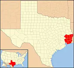 TerritoryThe counties of Chambers, Hardin, Jasper, Jefferson, Liberty, Newton, Orange, Polk, and Tyler in southeast Texas