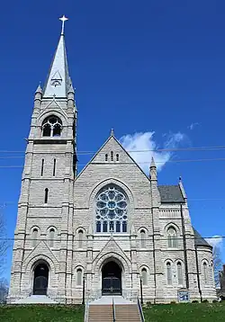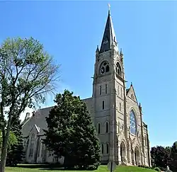 In 1839, French missionary Jean-Antoine-Marie Pelamourgues was named the first resident pastor of St. Anthony's. His duties included attending the communities of Muscatine, Burlington, Iowa City, Columbus Junction, DeWitt, Lyons, and Stephenson, Illinois, across the Mississippi River from Davenport.[3] Pelamourgues studied to improve his English; when German immigrants began to arrive, he took up that language as well. He helped establish the parish of St. Kunigunda in Davenport, where services were held in Latin and German. When the German pastor at St. Kunigunda refused to serve the needs of Irish immigrants who settled in the west end, Pelamourgues built St. Mary's two blocks away.