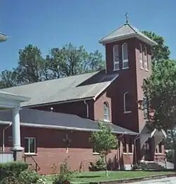 St. Anthony's Parish in Davenport was established around 1837 by Dominican missionary Samuel Mazzuchelli. Its church was built in 1838 on land donated by French-Potawatomi entrepreneur Antoine Le Claire. The building served as a church, city hall, courthouse, schoolhouse, public forum, and gathering place for the citizens of Davenport.[2]