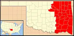 For the Catholic church, all of the Indian Territory became part of the Diocese of St. Louis in 1826.[2] It was passed to the new Diocese of Little Rock in 1843.[2] The first Catholic church in the Indian Territory was constructed in 1872 in Atoka by Irish workers building the Missouri-Kansas-Texas railroad.[3]