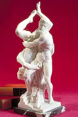 Hercules and Diomedes, from a 16th-century original at the Palazzo Vecchio in Florence, Italy; one of six marble statues representing "The Labours of Hercules" by Vincenzo de’ Rossi.[1]