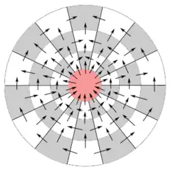The rook, bishop, horse (knight) and king move as in orthodox chess. The movement through the center is illustrated by the figure. From the center, a rook and a bishop can reach any square on the board. A horse in the center can reach any square in the two inner rows (2 and 3). The rook is not allowed to do a "null move", i.e. to move 360° around the board back to the same square in one move.
