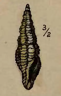 The length of the shell attains 10 mm. The shell is light yellowish brown. The fusiform shell is slender and attenuated. The sculpture is angular from the ribs being continuous. The seven whorls are transversely ploughed. The suture is simple. The aperture is contracted, linear and a little oblique. The siphonal canal is of medium length.