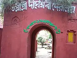 Dirgheswari Mandir (Assamese pronunciation: [dirɡʱeswori dewaloj]) is a temple situated in the northern banks of the river Brahmaputra in North Guwahati, Assam, India. Many ancient images made on rocks existed along with the temple. Brick temple was Built by Ahom king Swargadeo Siva Singha, Dirgheswari temple is considered as a Shakta pitha for Shakti worship. The main attraction of Dirgheswari temple is the annual Durga Puja celebrations, in which devotees from far of places use to attend.
